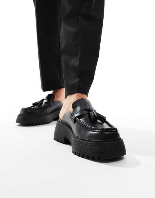 ASOS DESIGN - Mocassini neri stile sabot con nappe e suola spessa