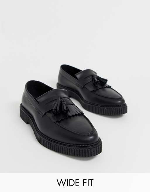 ASOS DESIGN - Mocassini pianta larga in pelle nera con suola creeper