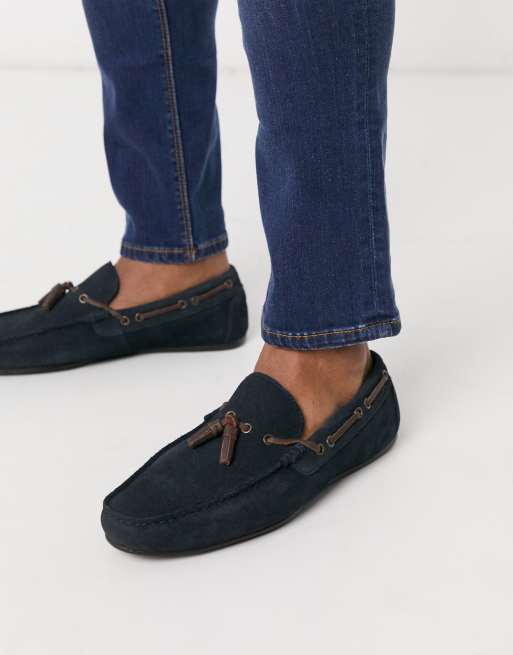 ASOS DESIGN - Mocassini stringati in camoscio blu navy