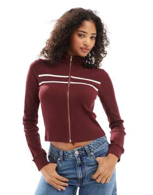 ASOS DESIGN - Neatfit - Top bordeaux con righe a contrasto e chiusura con zip