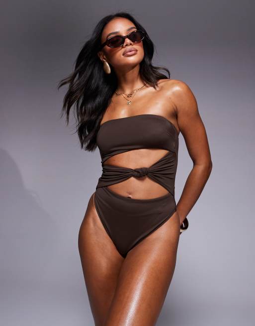 ASOS DESIGN - Nina - Costume da bagno marrone cioccolato con nodo