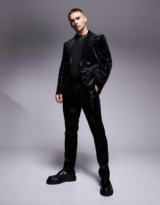 ASOS DESIGN - Novità - Pantaloni da abito skinny in velluto nero con paillettes