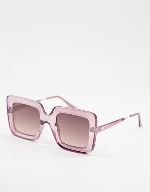 ASOS DESIGN - Occhiali da sole anni '70 con montatura squadrata oversize rosa trasparente con angoli smussati