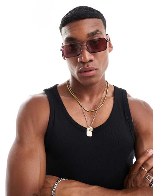 ASOS DESIGN - Occhiali da sole aviatore slim in metallo grigio canna di fucile con lenti rosa