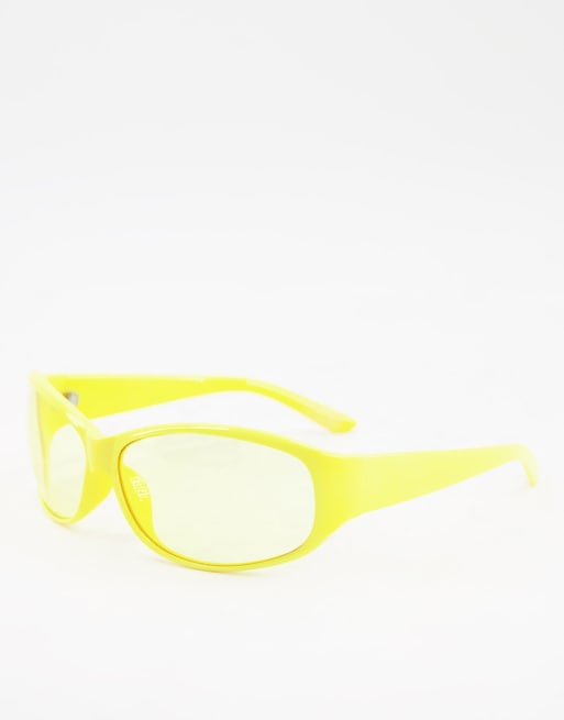 ASOS DESIGN - Occhiali da sole avvolgenti in stile anni '90 in giallo con lenti gialle