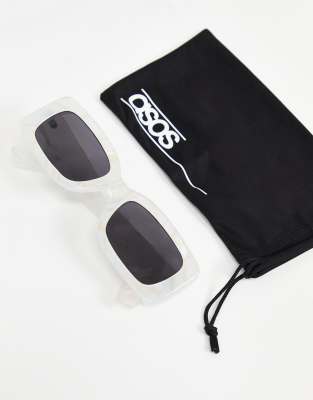 ASOS DESIGN - Occhiali da sole medi squadrati con finitura perlata - WHITE