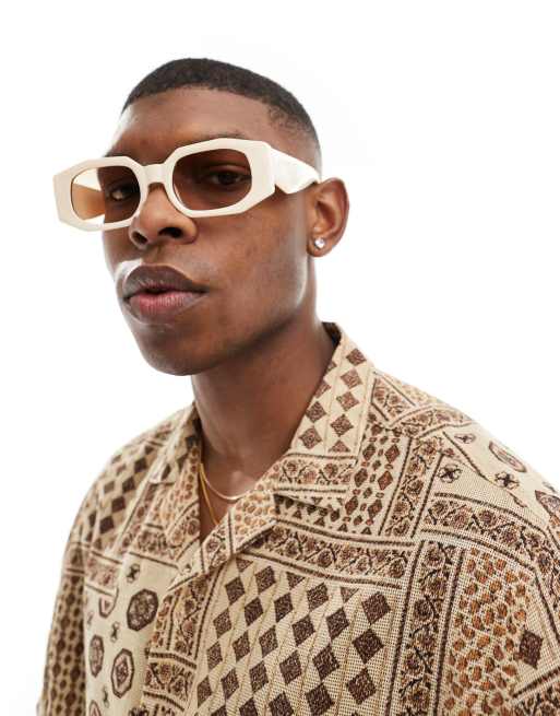 ASOS DESIGN - Occhiali da sole rettangolari crema