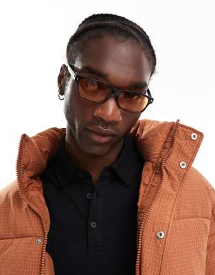 ASOS DESIGN - Occhiali da sole rettangolari neri con profili e lenti color ambra