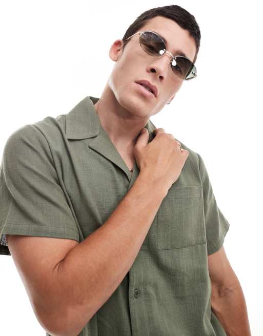 ASOS DESIGN - Occhiali da sole senza bordo oro con lenti arrotondate