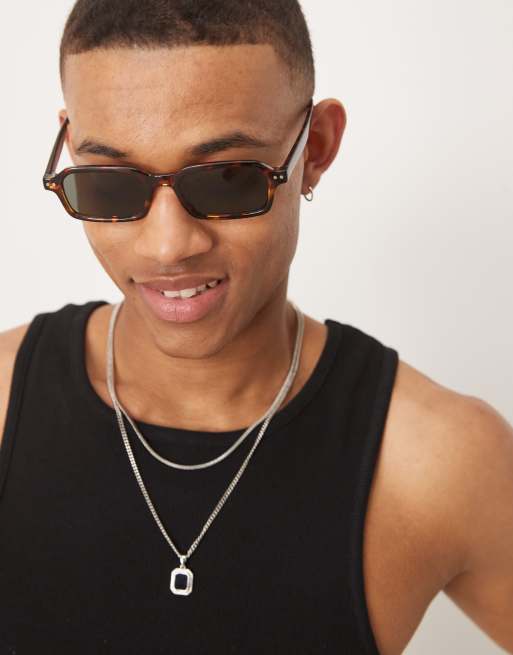 ASOS DESIGN - Occhiali da sole slim con montatura rettangolare tartarugata e lenti verdi fumé