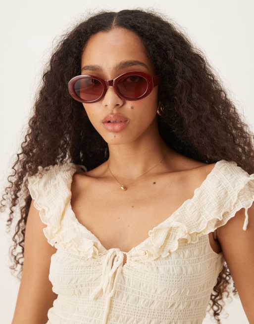 ASOS DESIGN - Occhiali da sole spessi ovali smussati bordeaux
