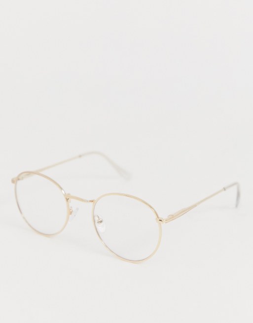 ASOS DESIGN - Occhiali tondi fashion in metallo oro con lenti trasparenti
