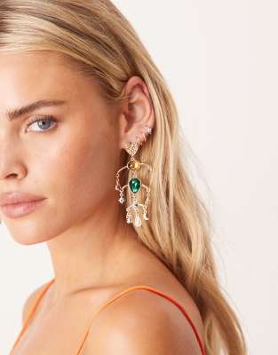 ASOS DESIGN - Orecchini a bottone dorati con charm pendenti con pietre semipreziose