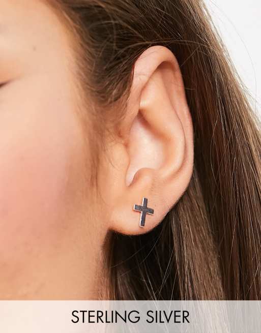 ASOS DESIGN - Orecchini a bottone in argento sterling a croce
