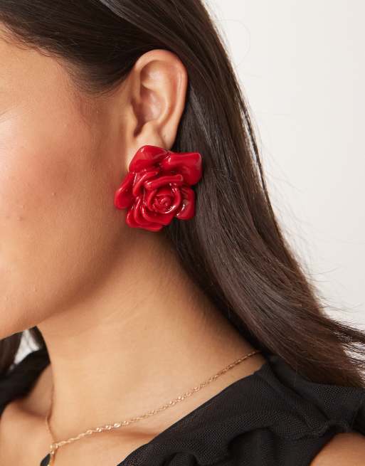 ASOS DESIGN - Orecchini a bottone rosso con rose oversize