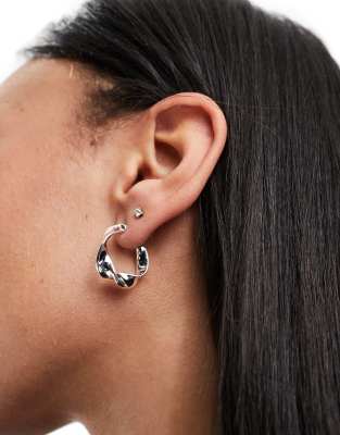 ASOS DESIGN - Orecchini a cerchio argentati con design attorcigliato piatto