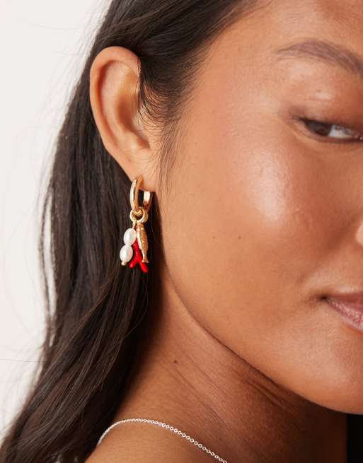 ASOS DESIGN - Orecchini a cerchio dorati con ciondoli con perla sintetica e di ispirazione marina