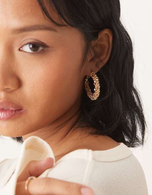 ASOS DESIGN - Orecchini a cerchio dorati con perline
