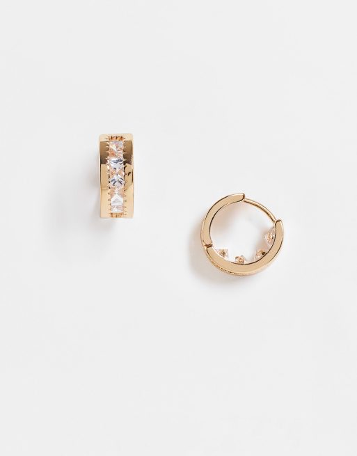 ASOS DESIGN - Orecchini a cerchio dorati con strass