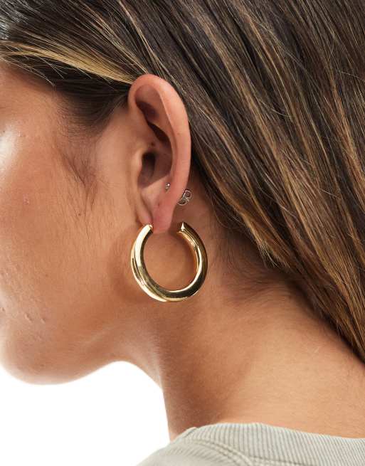 ASOS DESIGN - Orecchini a cerchio tubolari placcati oro 14k