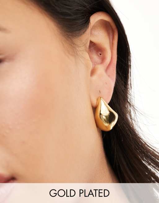 ASOS DESIGN - Orecchini a clip placcati oro 14 k a bottone con design effetto metallo fuso