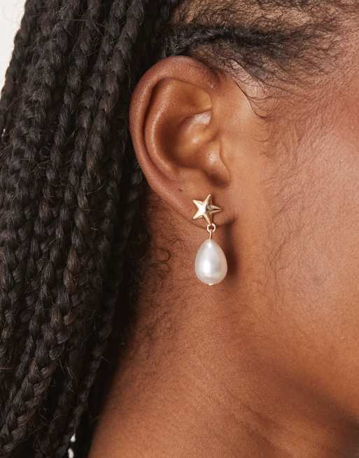 ASOS DESIGN - Orecchini dorati con stelle e perle sintetiche