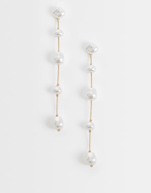 ASOS DESIGN - Orecchini pendenti dorati con perle d'acqua dolce sintetiche