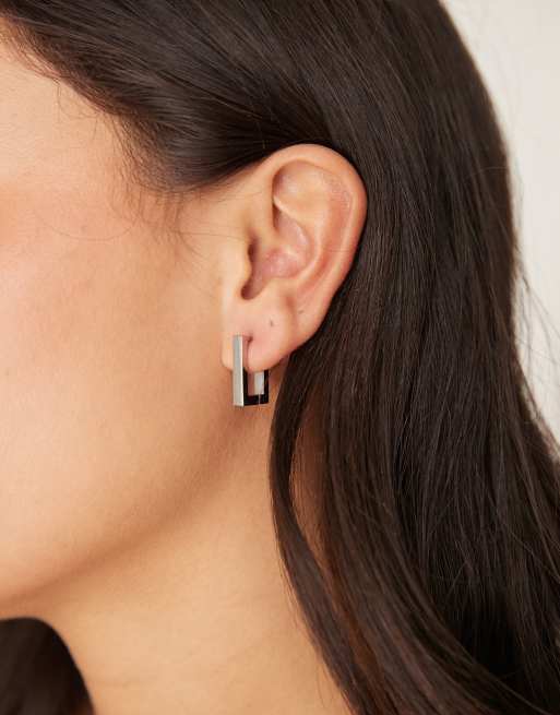 ASOS DESIGN - Orecchini piccoli squadrati argentati in acciaio inossidabile resistente all'acqua