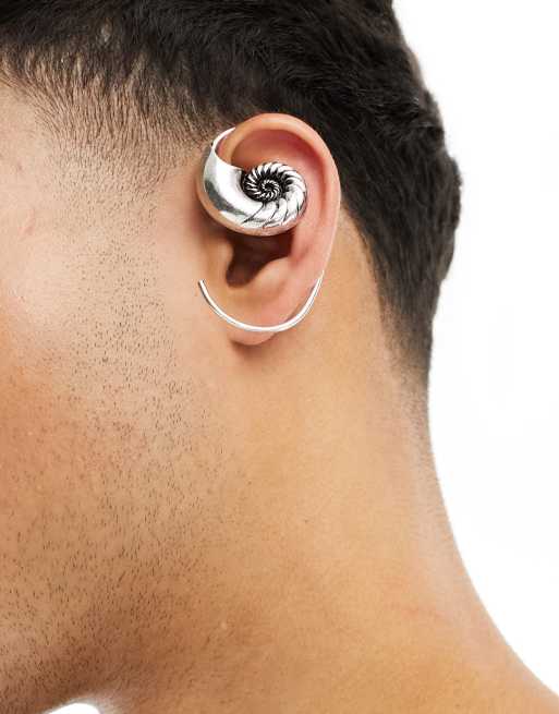 ASOS DESIGN - Orecchino ear cuff argentato con design a forma di conchiglia