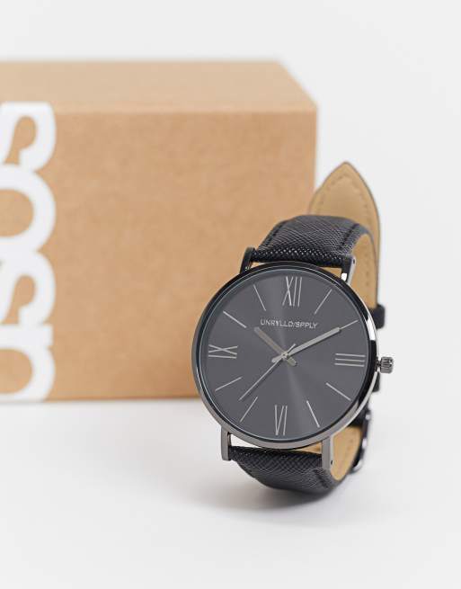 ASOS DESIGN - Orologio classico nero con cinturino in saffiano