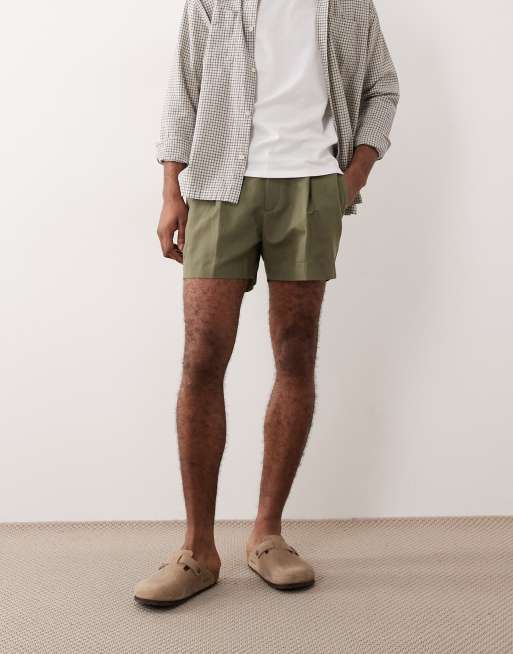 ASOS DESIGN - Pantaloncini ampi eleganti in misto lino verde oliva