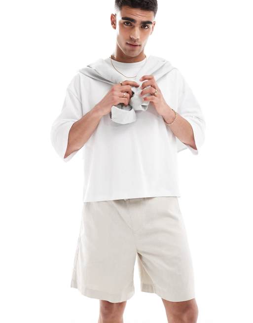 ASOS DESIGN - Pantaloncini ampi in lino color pietra