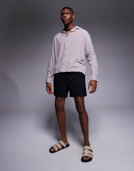 ASOS DESIGN - Pantaloncini ampi neri in misto lino