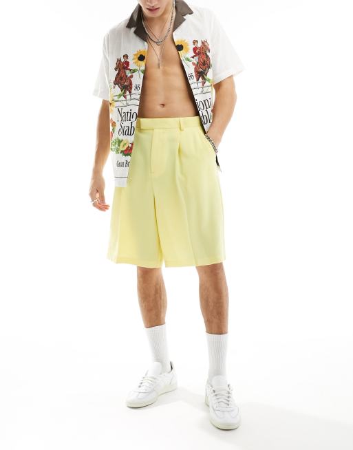 ASOS DESIGN - Pantaloncini bermuda da abito in crêpe giallo acceso