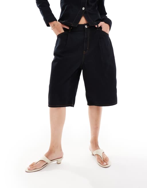 ASOS DESIGN - Pantaloncini bermuda in denim nero con pieghe