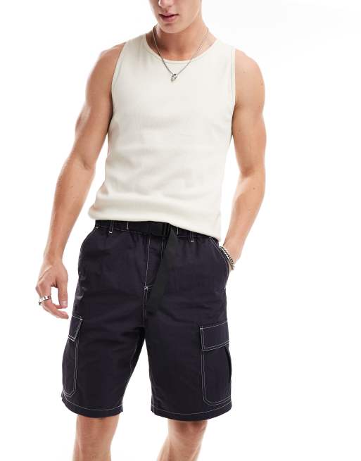ASOS DESIGN - Pantaloncini cargo blu navy con cintura