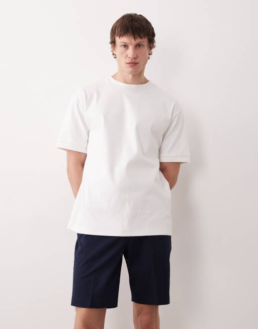 ASOS DESIGN - Pantaloncini chino slim eleganti in misto cotone blu navy