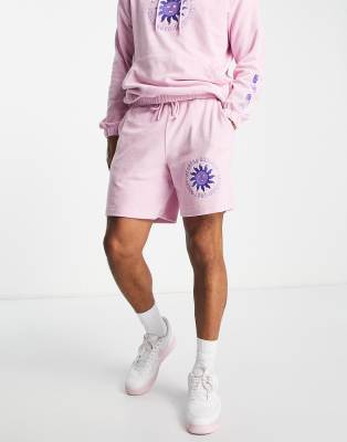 ASOS DESIGN - Pantaloncini comodi in spugna rosa con ricamo