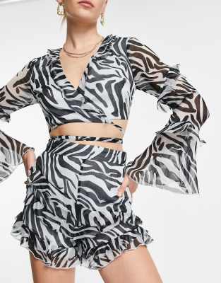 ASOS DESIGN - Pantaloncini con stampa zebrata e volant in coordinato