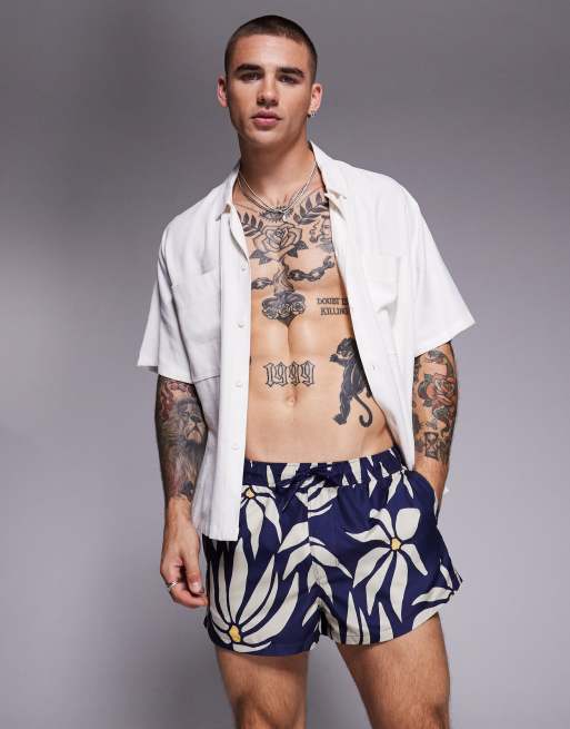 ASOS DESIGN - Pantaloncini da bagno molto corti blu navy con stampa a fiori