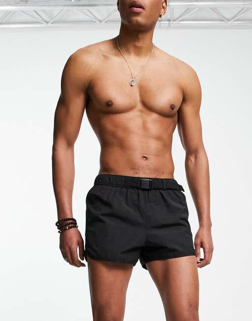 ASOS DESIGN - Pantaloncini da bagno stile runner neri con cintura