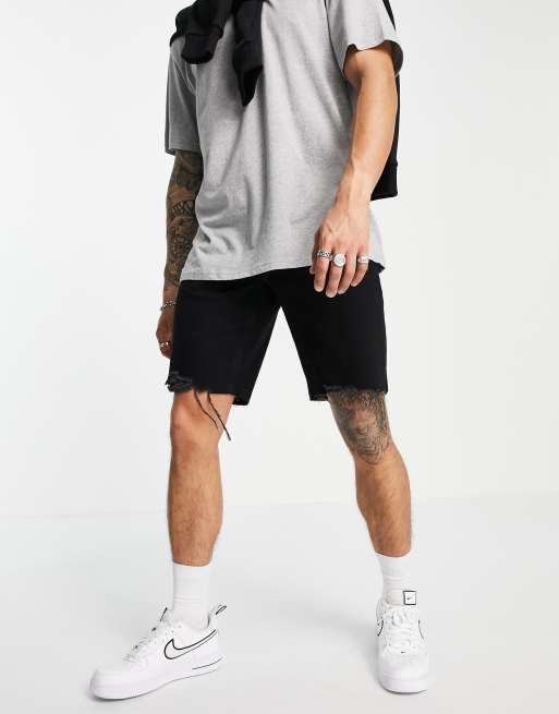 ASOS DESIGN - Pantaloncini di jeans slim neri con fondo grezzo