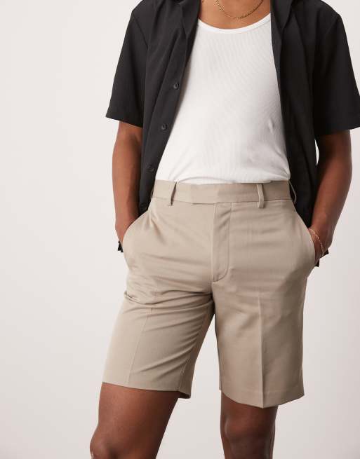 ASOS DESIGN - Pantaloncini dritti eleganti color pietra scuro