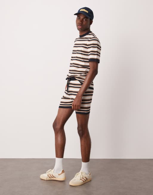 ASOS DESIGN - Pantaloncini in maglia a righe in coordinato