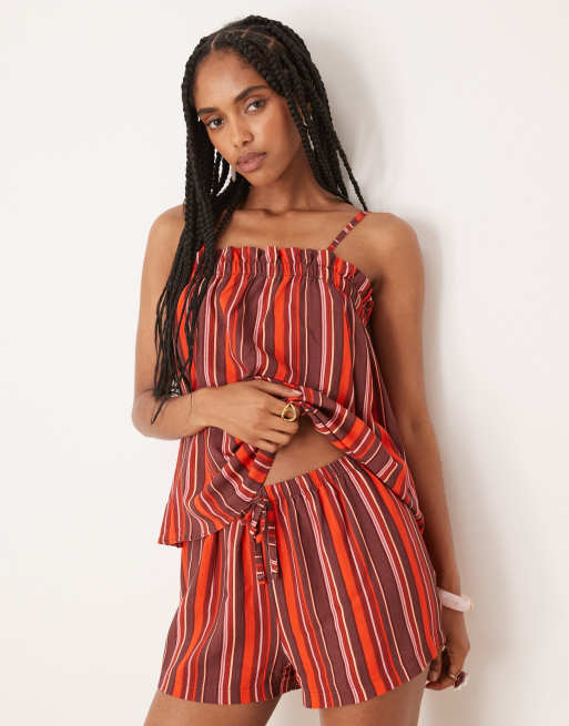 ASOS DESIGN - Pantaloncini micro color granata a righe