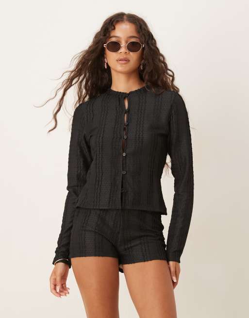 ASOS DESIGN - Pantaloncini neri all'uncinetto in coordinato