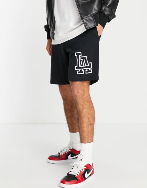 ASOS DESIGN - Pantaloncini oversize in jersey neri con scritta "LA"