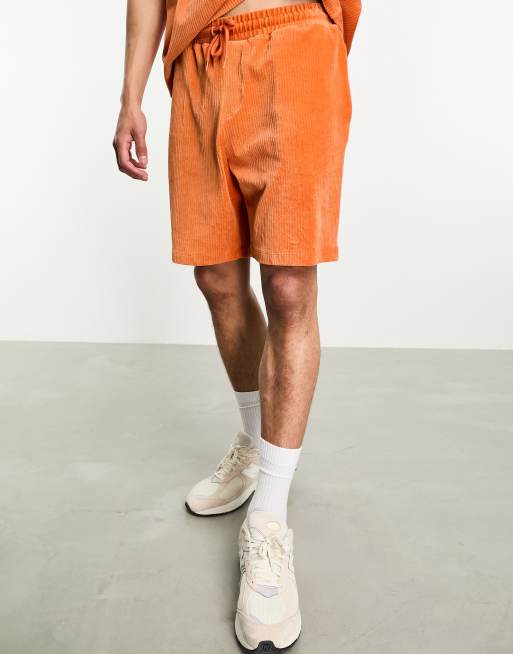 ASOS DESIGN - Pantaloncini oversize in velour arancione bruciato a coste