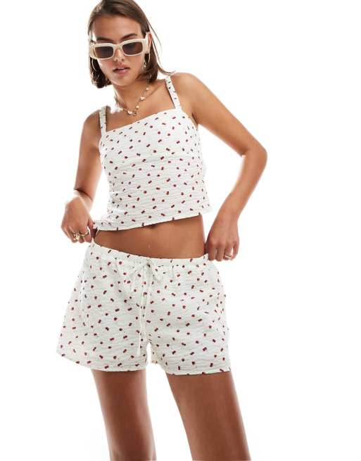 ASOS DESIGN - Pantaloncini testurizzati con stampa di ciliegie