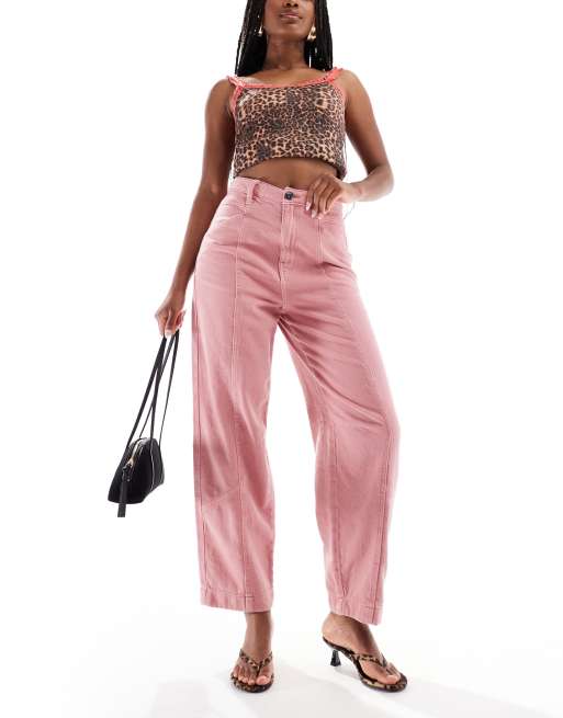 ASOS DESIGN - Pantaloni a cilindro con cuciture rosa slavato
